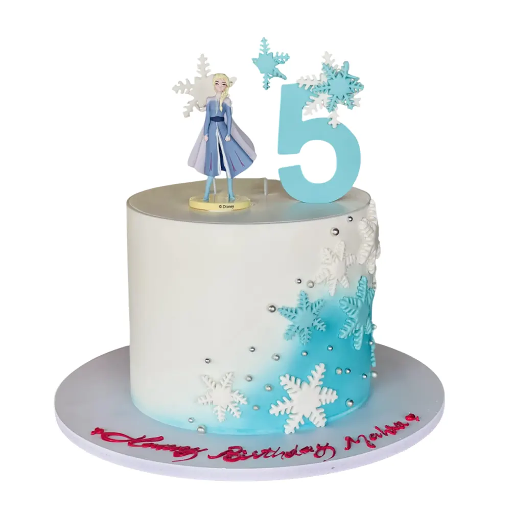 Our Premium Elsa Toy White & Blue Celebration Cake features a beautiful white and blue color palette inspired by icy elegance, topped with an Elsa toy to create a magical centerpiece. With smooth cream finishing and themed detailing, this celebration cake is perfect for birthdays and Frozen-themed parties.
